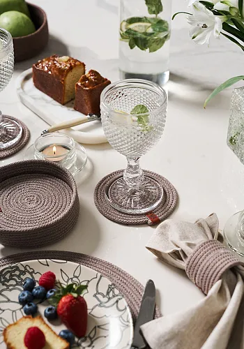 Набор подставок для чашек и бокалов BOHO, 6 шт., d 12 см.,100% хлопок, шнур,...