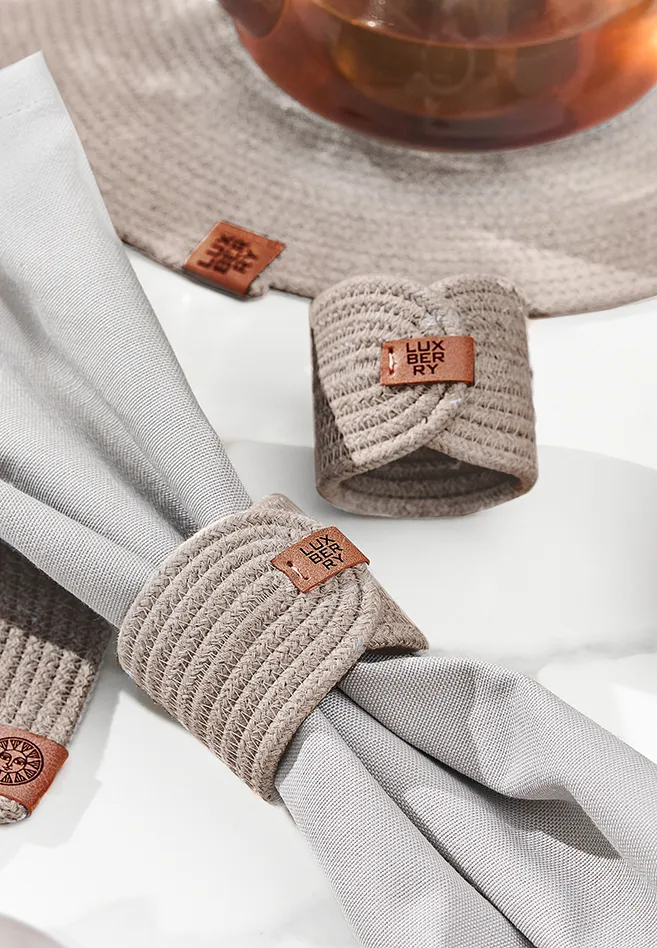 Сервировочное кольцо для столовых салфеток BOHOвыполнено из 100% хлопкового шнура, пришивной лэйбл LUXBERRY из искусственной кожи.
