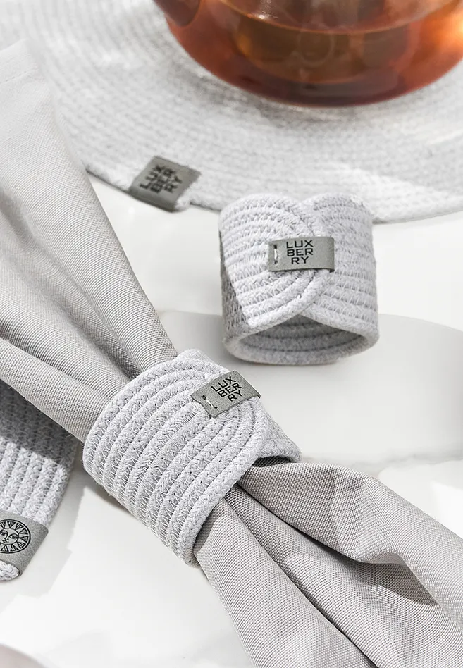 Сервировочное кольцо для столовых салфеток BOHOвыполнено из 100% хлопкового шнура, пришивной лэйбл LUXBERRY из искусственной кожи.