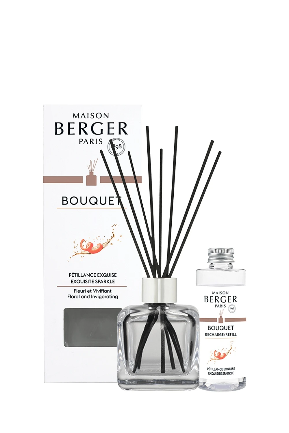 Подарочный аромадиффузор из коллекции «Розали» с ароматом-бестселлером «Брызги Шампанского» от бренда Maison Berger Paris — округлая серая ваза с золотым кольцом для создания декоративного элемента в интерьере и непрерывной ароматизации помещения в праздничной упаковке.«Брызги Шампанского» — игристая цветочная композиция из ландыша, фиалки и розы с фруктовым оттенком грейпфрута и ежевики. Многогранная пирамида, необычайно женственная и соблазнительная, наполнит помещение ароматом праздника и ощущением беззаботности.