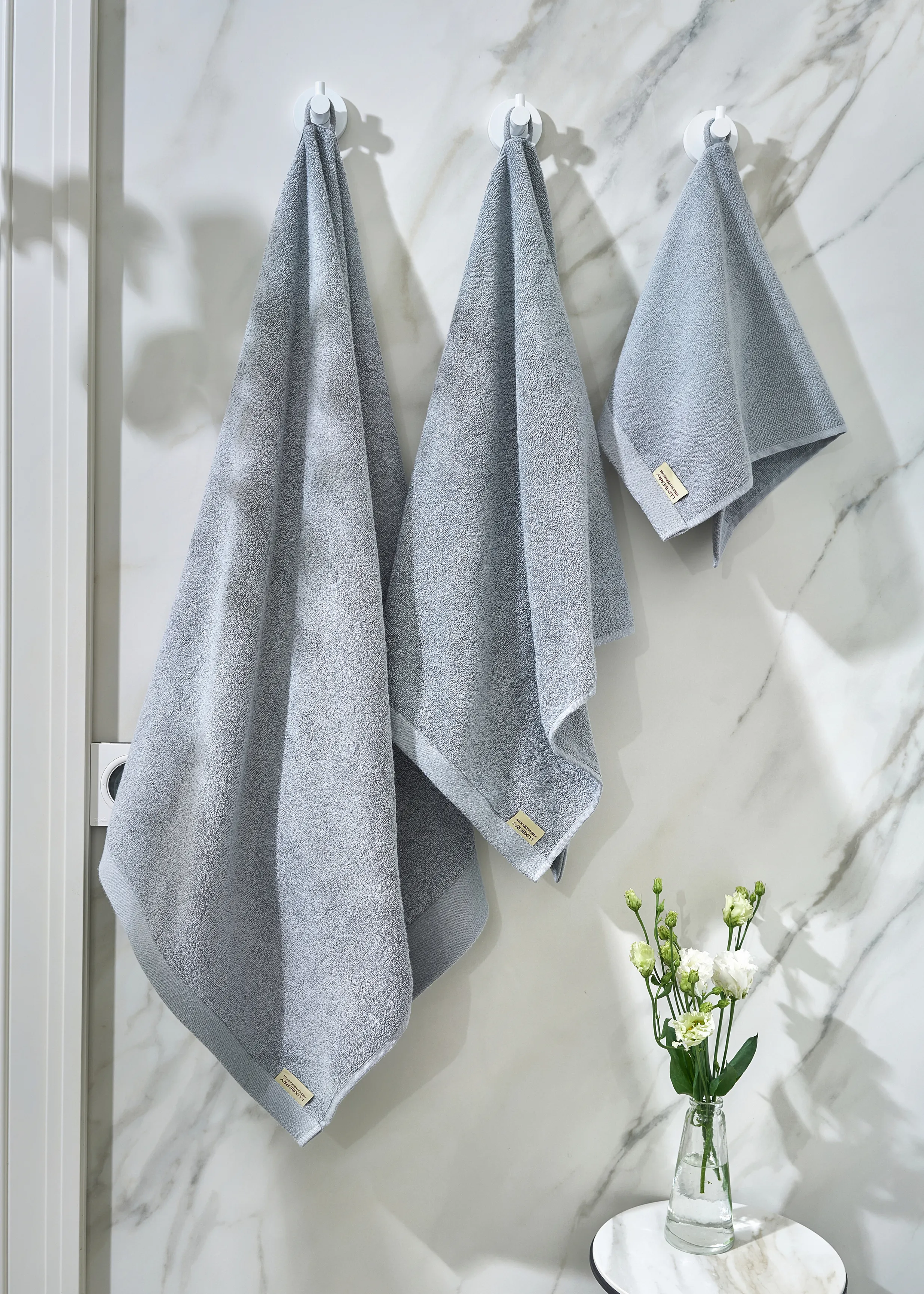 На полотенце есть петелька для подвешивания на крючок в ванной комнате.