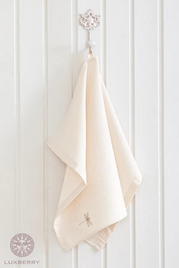 Полотенца серии "FRESH" выполнены из "вафельного" хлопкового полотна. Полотенце хорошо впитывает влагу и быстро сохнет. Край полотенца "FRESH" украшает элегантная вышивка очаровательная "стрекозка". Вышивка выдержит множество стирок и глажек и это только улучшит качество полотенец, полотенца станут более мягкими и приятными на ощупь.Полотенце серии "FRESH" можно повесить на крючок, благодаря пришитой к полотенцу петельке.