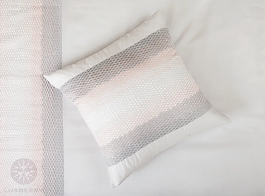 Наволочка "CALIPSO" сшита из высококлассного сатина 300ТС, 100% хлопок без добавления синтетики. Наш сатин-это тонкое, прочное,гладкое и шелковистое за счет диагонального переплетения хлопковых нитей полотно.Дизайн "CALIPSO" - вышивка с имитацией чешуи рыбы. Это высокопрофессиональная вышивка,которая после стирки не сжимается, так как выполнена заранее усаженными нитями.