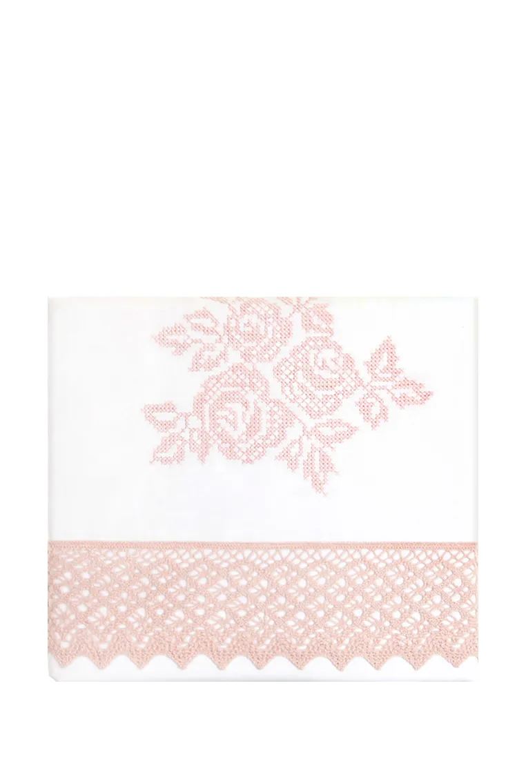 Основной цвет комплекта постельного белья "ROSE" - белый. С трех сторон пододеяльник отделан розовым хлопковым кружевом с треугольным фестоном. Кружево пришито и к внешней стороне наволочки.