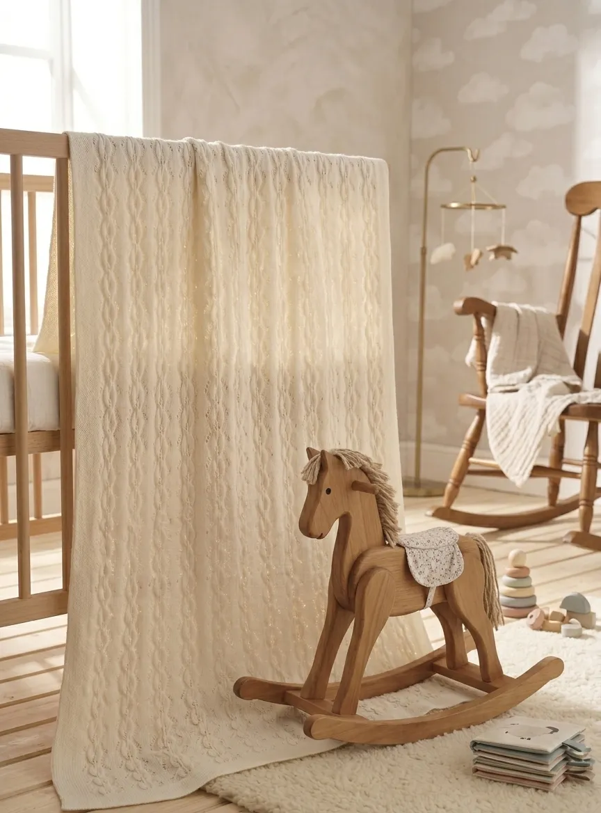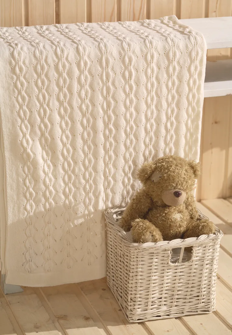 Плед IMPERIO 77 мягкий, нежный теплый. Ажурная воздушная вязка пледа Он отлично согреет малыша в зимнюю погоду а благодаря небольшому добавлению полиамида не будет скатываться и хорошо сохранит форму после стирки.