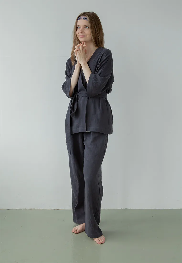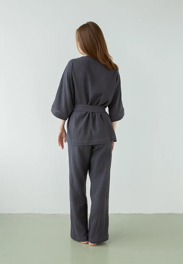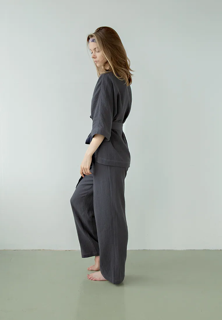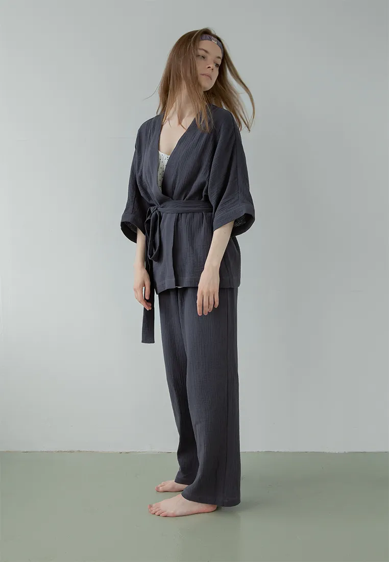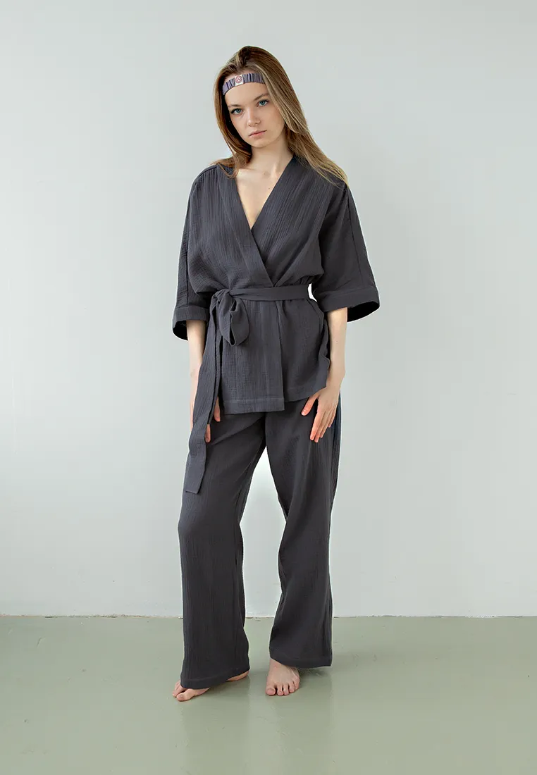 Костюм кимоно из муслина - идеален для комфортного времяпровождения дома, на прогулке, занятиях йогой и медитацией.