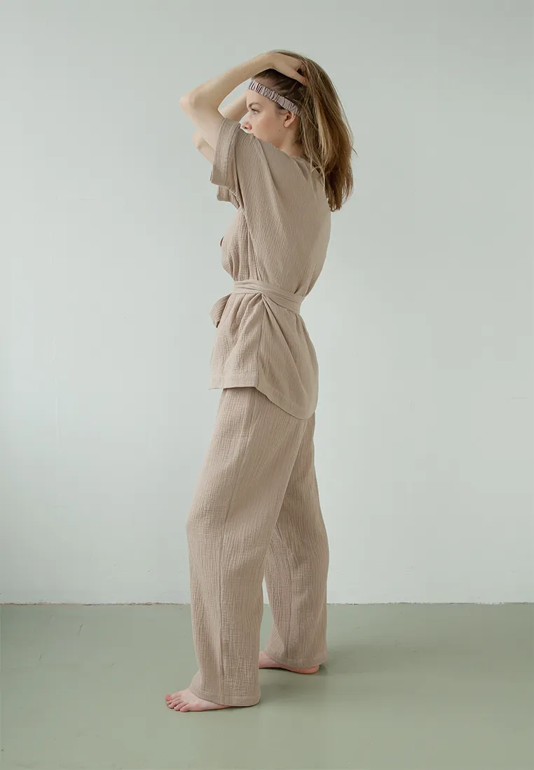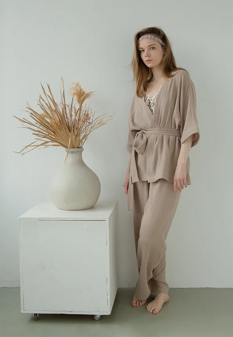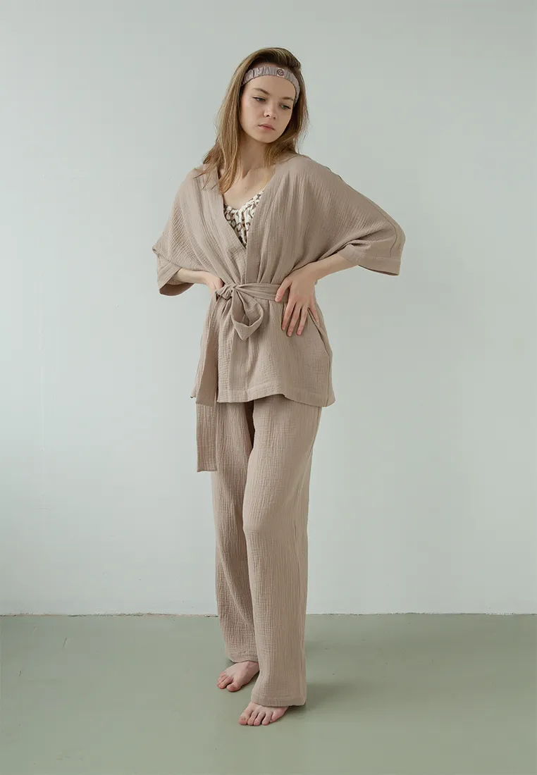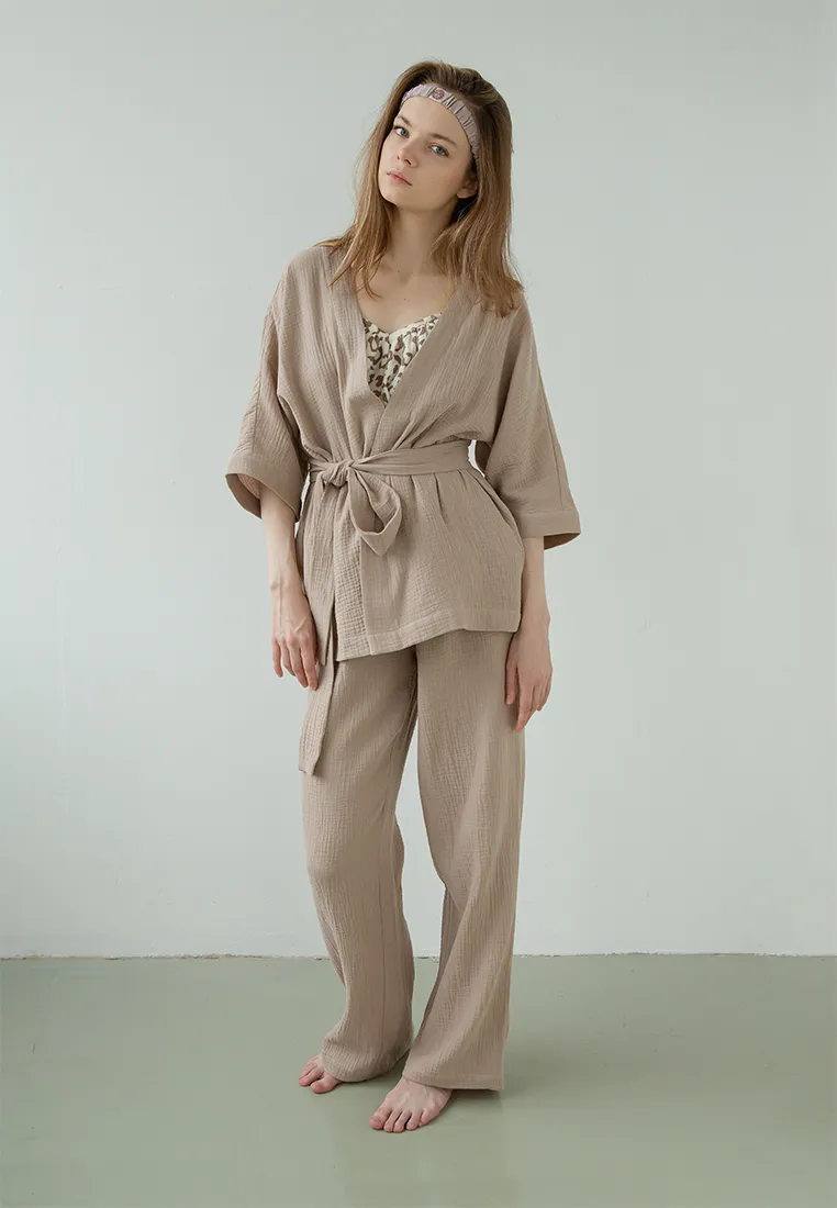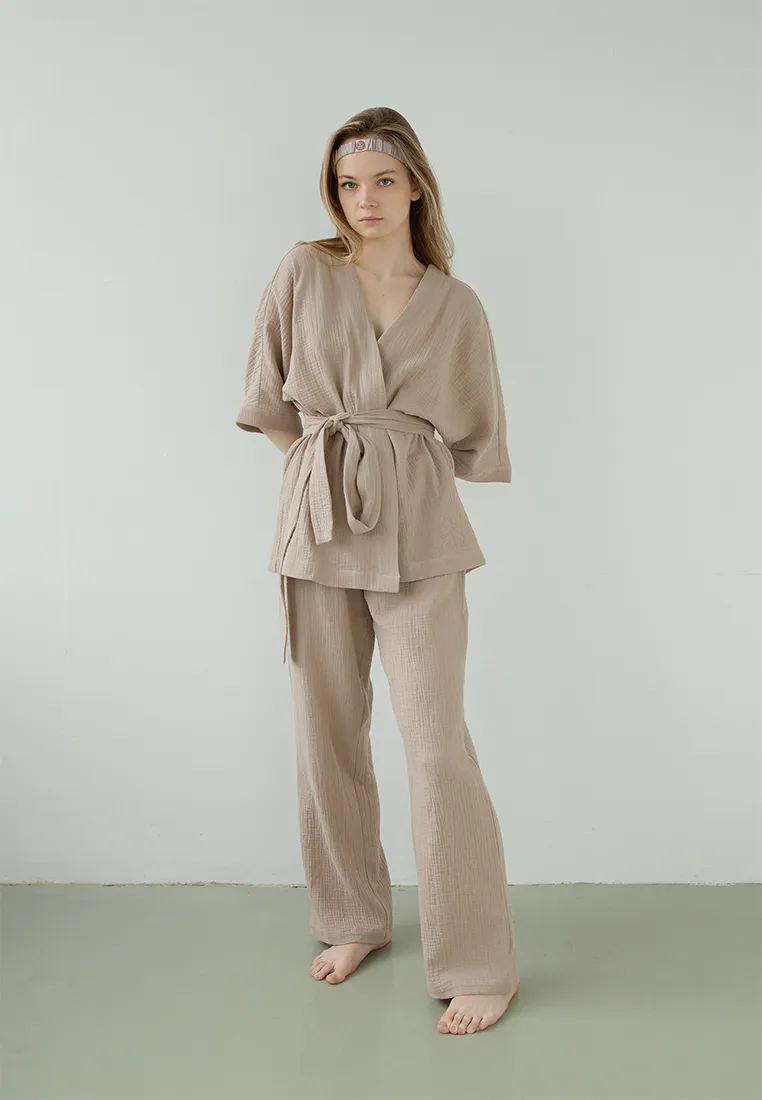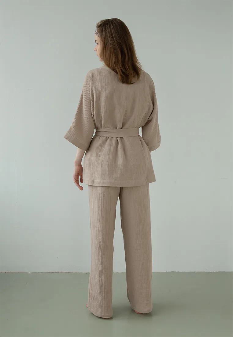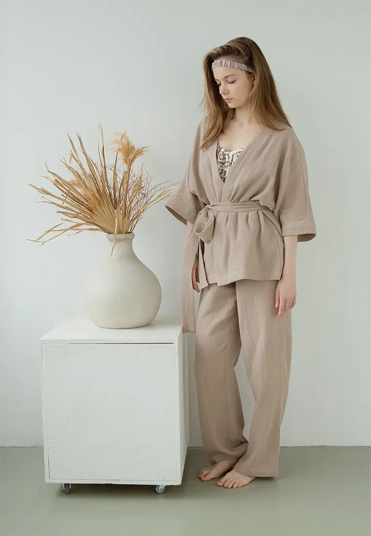 Костюм кимоно из муслина - идеален для комфортного времяпровождения дома, на прогулке, занятиях йогой и медитацией.