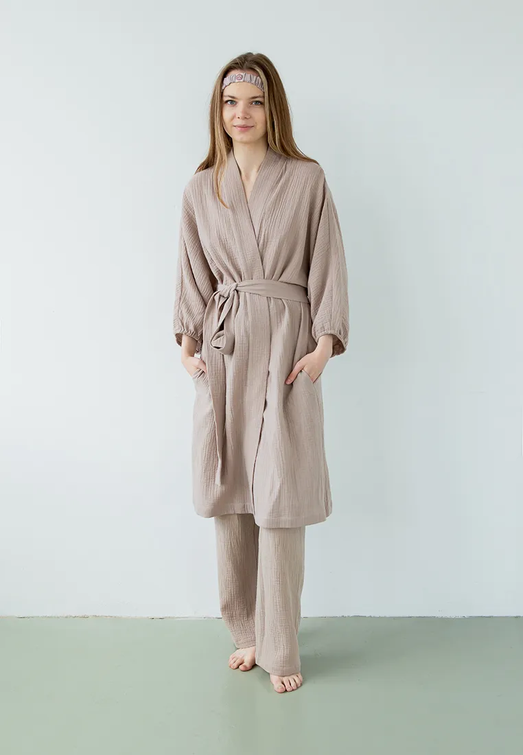 Халат из муслина - идеален для комфортного времяпровождения дома, на прогулке, занятиях йогой и медитацией.