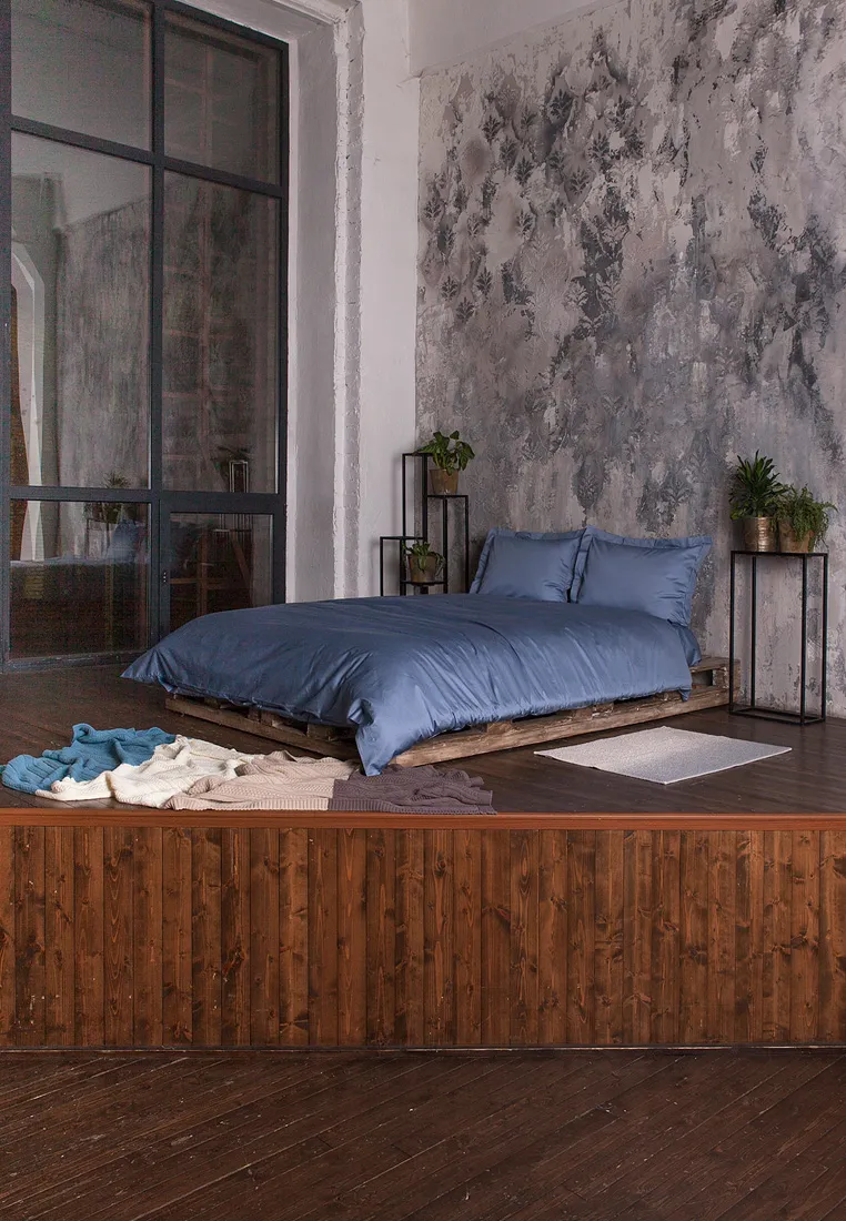 Элегантный и лаконичный комплект постельного белья благородного, сине-голубого цвета.Пошит из однотонного тонкого, прочного и шелковистого сатина, плотностью 300ТС. Наволочки с классическими ушками 5 см., пододеяльник на пуговицах, простыня прямая.