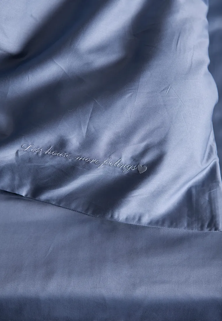 В углу пододеяльника есть маленький секретик – вышивка «Less house, more feelings», в переводе на русский язык: «Меньше быта, больше чувств».