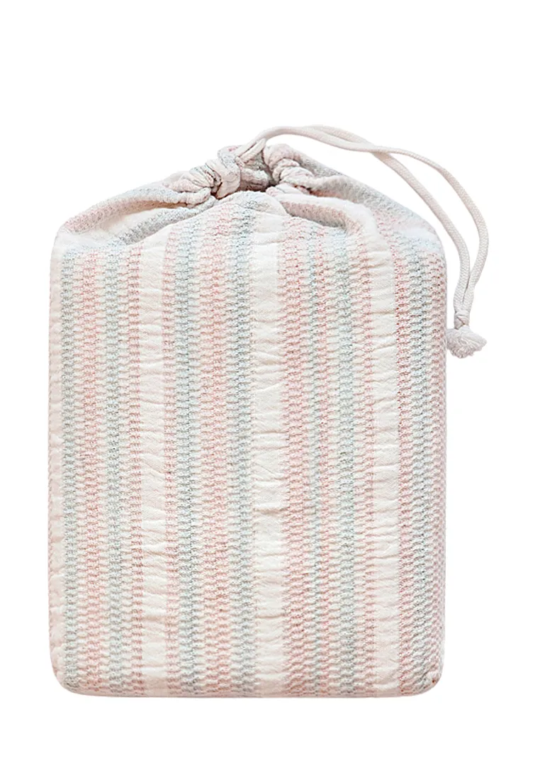 Легкое покрывало "CANDY" изготовлено из хлопковой рогожки. Этот натуральный материал имеет 'шахматный' рисунок нитей, обусловленный особенностями плетения. Покрывало прочное, износостойкое, обладает отчетливой фактурой. Сочетание трех цветов: экрю/розовый/голубой выглядит нежно и стильно. Покрывало упаковано в мешочек на завязках, поэтому его удобно взять с собой в поездку.Тип ткани - хлопок 100% 300 gr/m2.