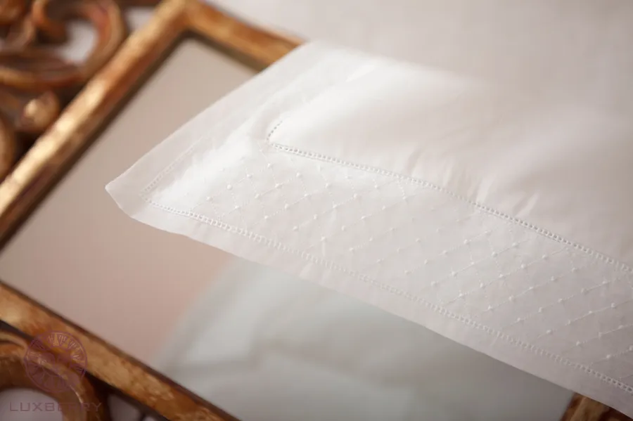 Наволочка "VENICE" - это 100% хлопок, перкаль, 200ТС,плотная, тонкая хлопковая ткань,не пилингуется.Наощупь перкаль слегка приятно похрустывает,как- будто она слегка накрахмалина.Этот эффект образуется в процессе производства ткани, каждая хлпковая нить пропитана органическим клеевым составом,что придает ткани особую прочность и отсутствие катушек в процессе использования. Дизайн прост и элегантен.Нежная вышивка и мережка,которая после стирки не сжимается. Стирка при 40С. Упакована в ПВХ.Тип застежки: Клапан