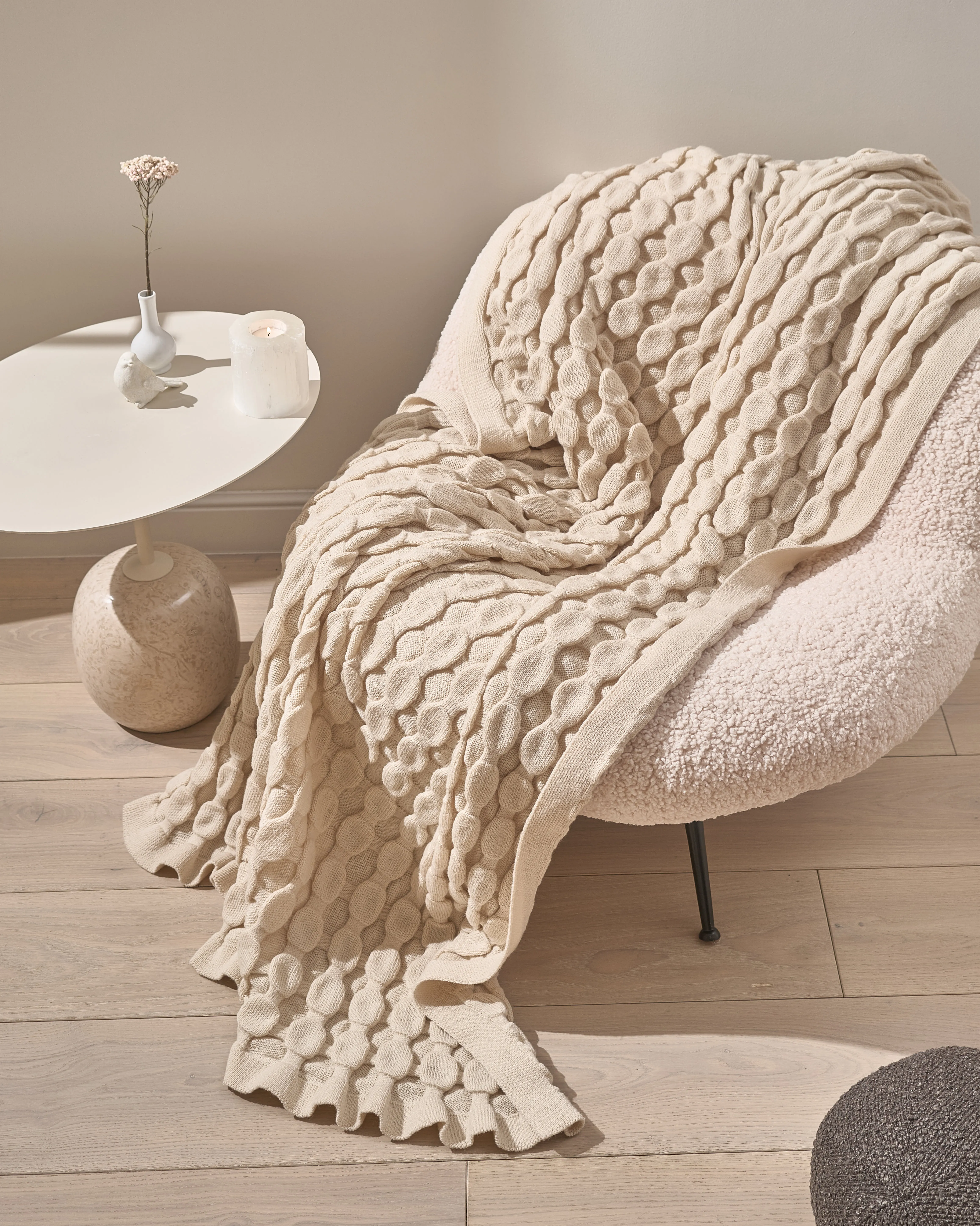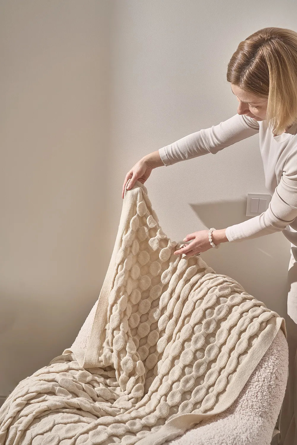 Дизайнерский плед BUBBLES связан с эффектом 3Д рисунка!Мы его в шутку называем пупырчатый.