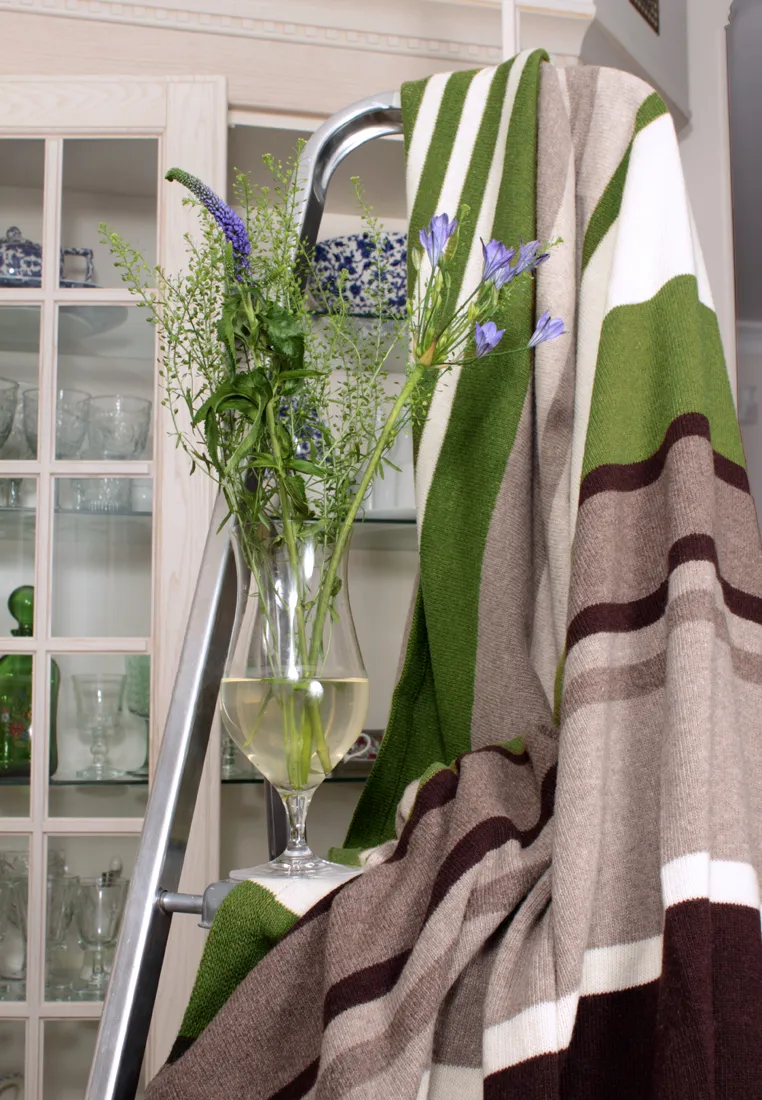Плед Imperio 82 имеет в составе- 80% овечья шерсть и 20% полиамид.Полиамид необходим чтобы плед был мягким,не колючим и не скатывался.Наш плед можно стирать в машинке,но только в специальной сетке для нежной стирки,сушить в разложенном виде на горизонтальной поверхности.Пдед Imperio 82- тканый, Дизайн- разноцветные полосы разной толщины.Яркие белые и травянные полосы освежают бежево-коричневую гамму пледа.Размер пледа 150*200см универсальный,он может быть в качестве декоративного акцента в вашем интерьере,а можно уютно укутаться в него и читать любимую книжку.Тип рисунка - Геометрический, полосы