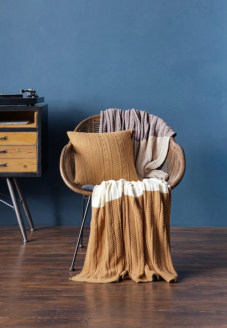 Плед "LUX 10" из 100% хлопка, ажурной вязки и гармонично подобранными разноцветными широкими полосами. Плед многофункционален и готов подстроиться под желания хозяйки. Его можно использовать как легкое одеяло или положить на кровать как декоративный элемент. Приятно накинуть на плечи, когда читаешь книгу или во время медитации.Представлен в двух цветах. Дополнить его можно однотонными вязаными наволочками в оттенке пледа.