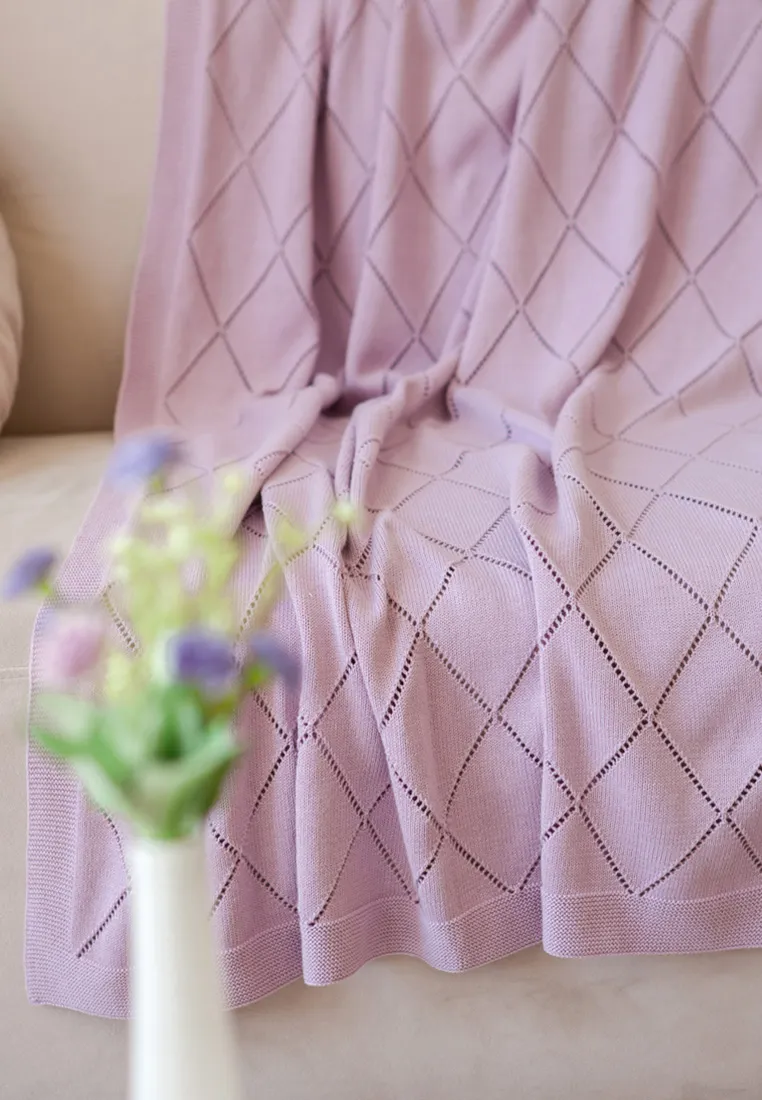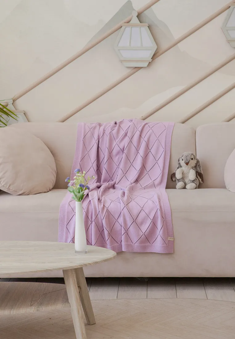 Пледик LUX 7 имеет современный дизайн в виде ажурных ромб. Связан машинным способом из мягкого гипоаллергенного 100% хлопка.Натуральный состав пледа дает хорошую терморегуляцию и воздухопроницаемость.