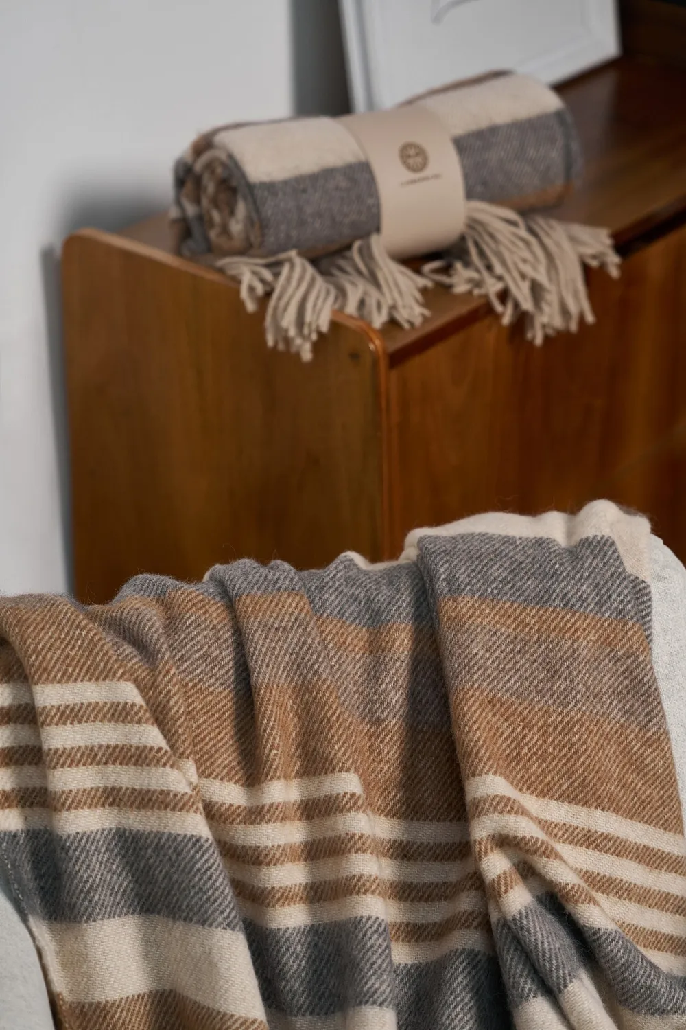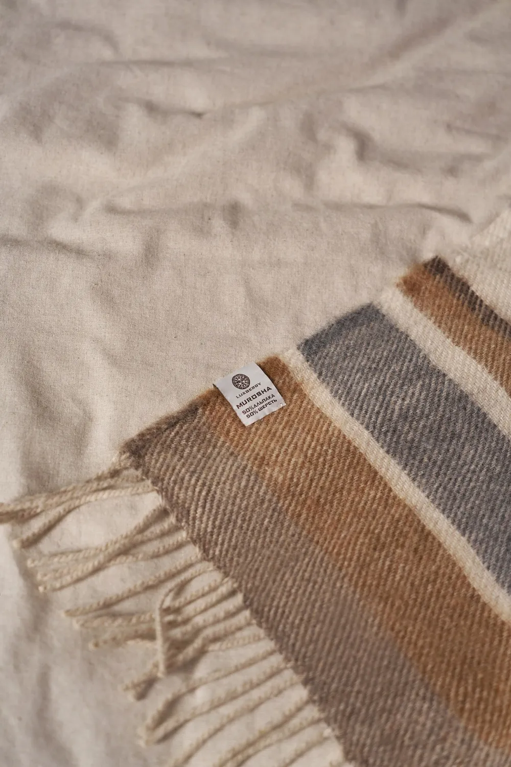 Представляем вам теплый и мягкий плед MUROSHA.Мы соединили 50% нежности шерсти альпаки, которая так мягко «мурлычет» при каждом вашем движении, и 50% согревающей заботы мериносовой шерсти.