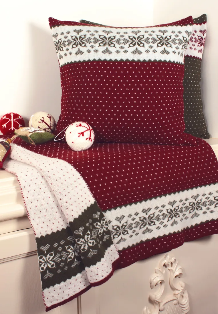 Плед "Norway" связан из овечьей шерсти с добавлением полиамида,80% шерсти и 20% полиамида. Такая добавка нужна,чтобы ваш плед был мягким,не колючим,не пилинговался и долго служил. Его можно стирать в машинке в специальной сетке для нежной стирки и сушить в разложенном виде на горизонтальной поверхности.Плед - тканный,дизайн выполнен в традиционном скандинавском стиле.В коллекции две расцветки.В данном случае - бордо/белый/зеленый.Отдельно можно приобрести декоративную наволочку на молнии.Не забудьте подушку Люксбери!Тип рисунка - Скандинавский