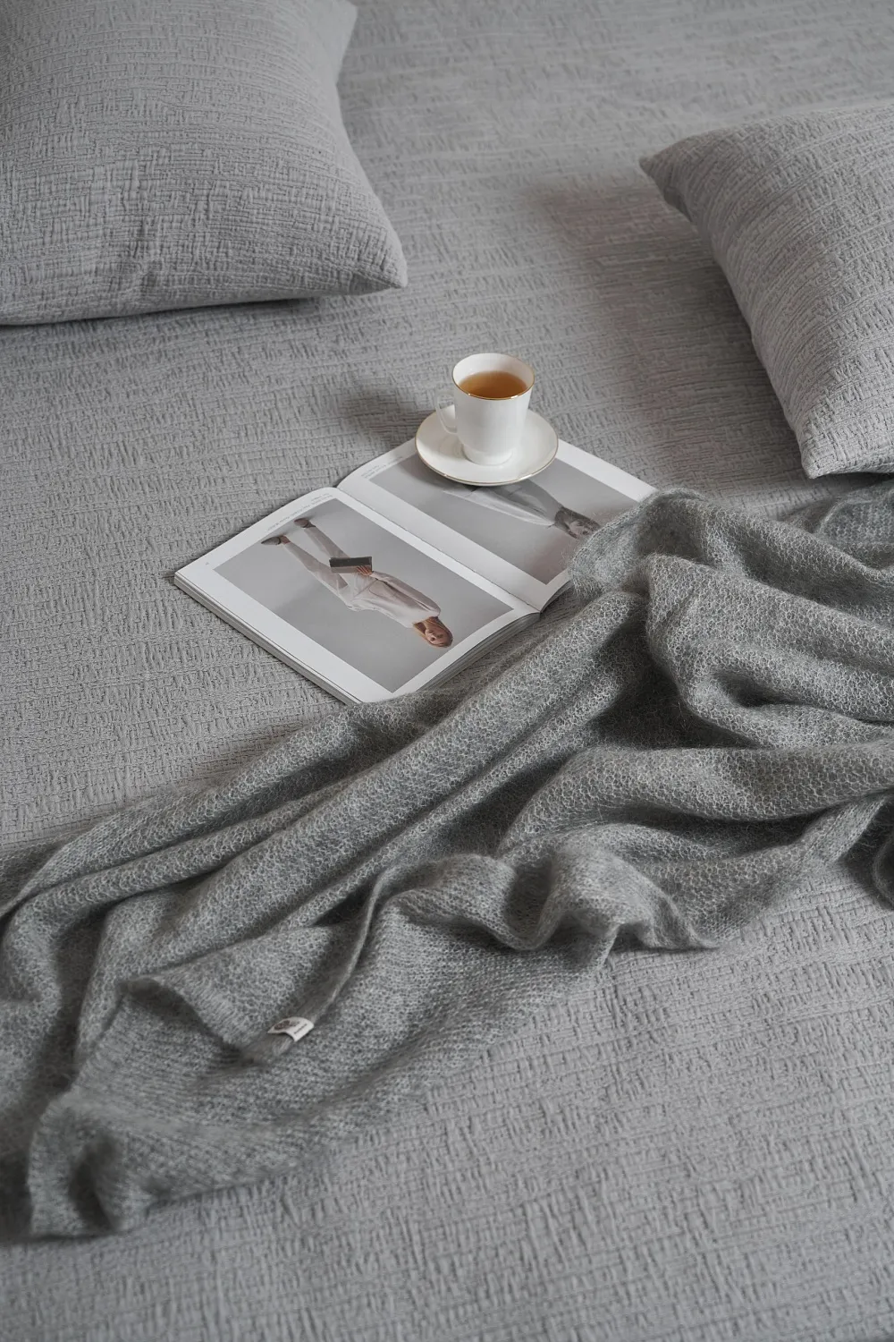 Чтобы ваша кровать выглядела как на фото в журнале, добавьте декоративные подушки из той же коллекции и уютный вязаный хлопковый плед. Полный ансамбль для сладких снов и стильных фото!