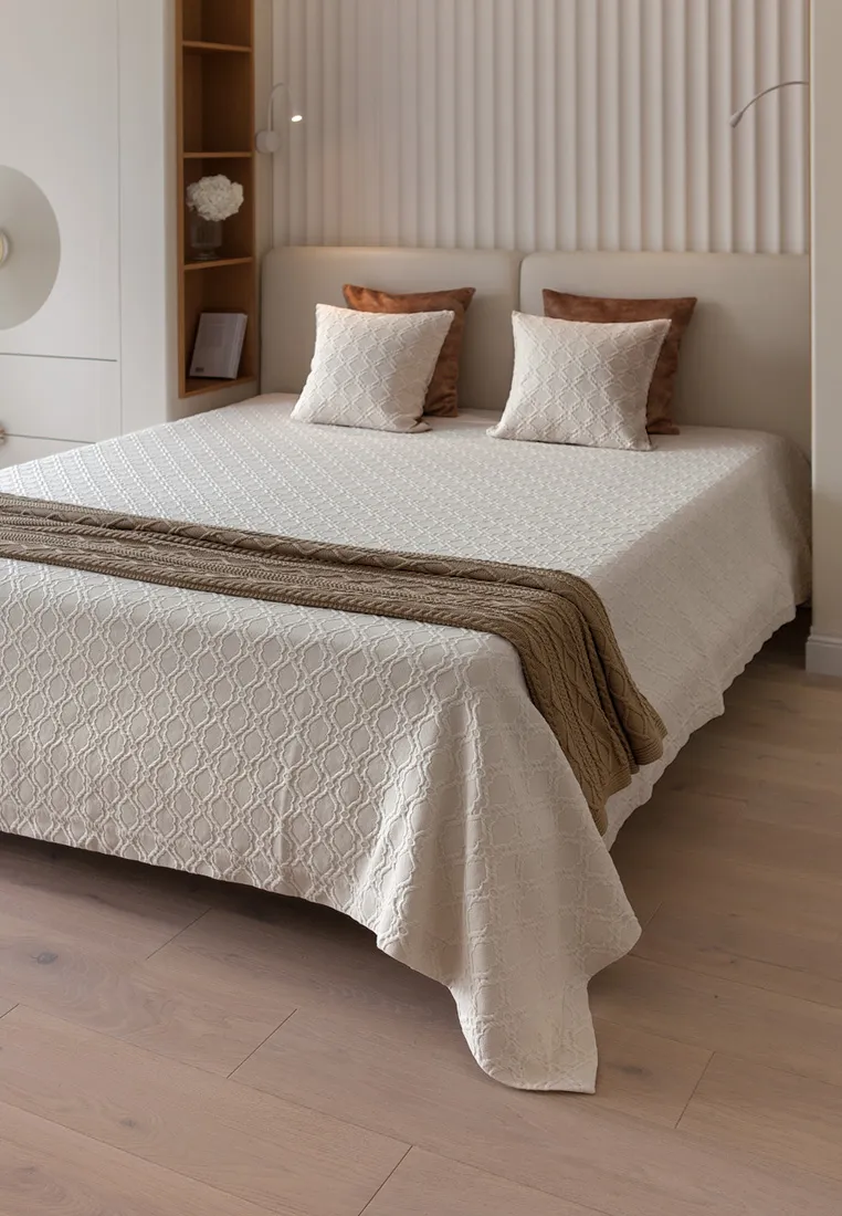 Элегантное, практичное и долговечное покрывало Edinburg из 100% хлопка. Благодаря натуральному составу Edinburg не будет электризоваться и неприятно шуршать.Мягкое, приятное на ощупь. Не боится зацепок за счет плотного плетения нитей.