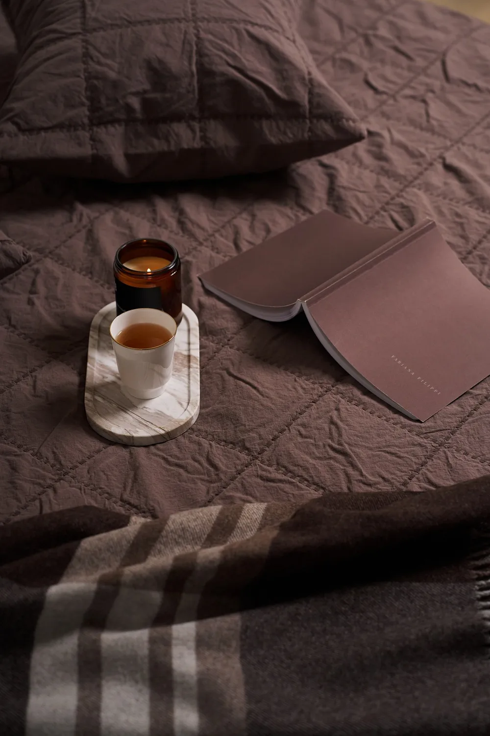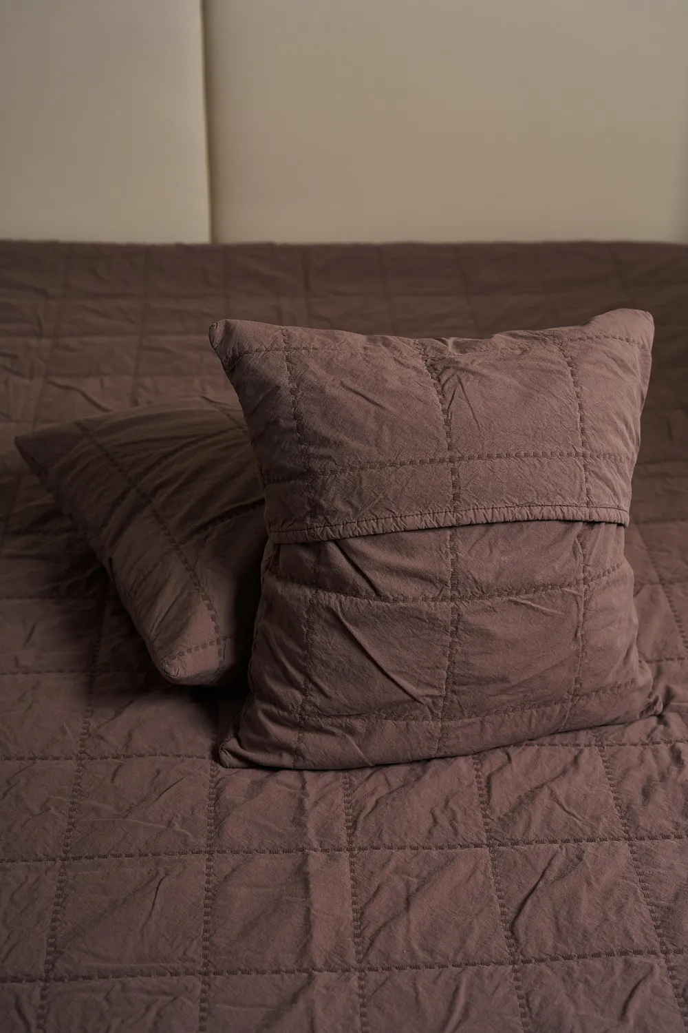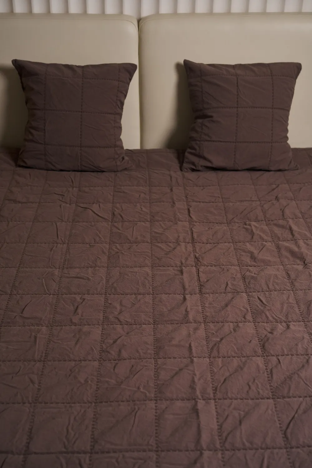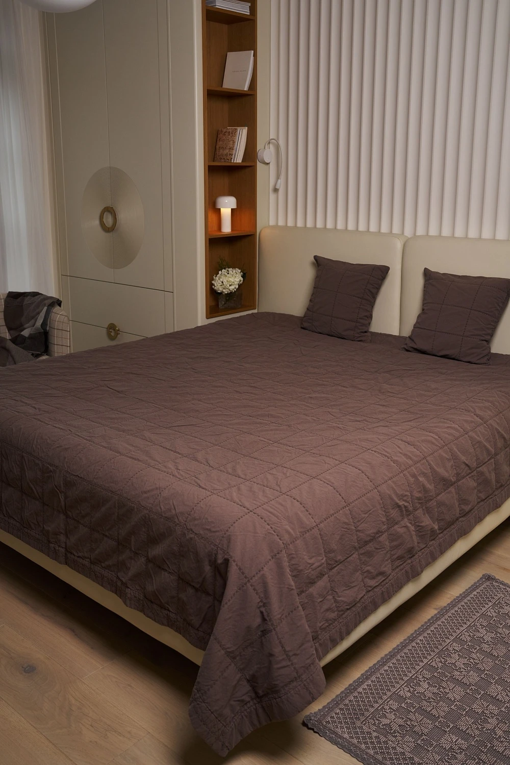 Дизайн состоит из стеганых квадратов 13х13см, создающих потрясающий 3D-эффект. Благодаря велюровым линиям и объемной жатой ткани внутри квадратов, покрывало красиво и не плоско лежит на кровати добавляя спальне элегантности.