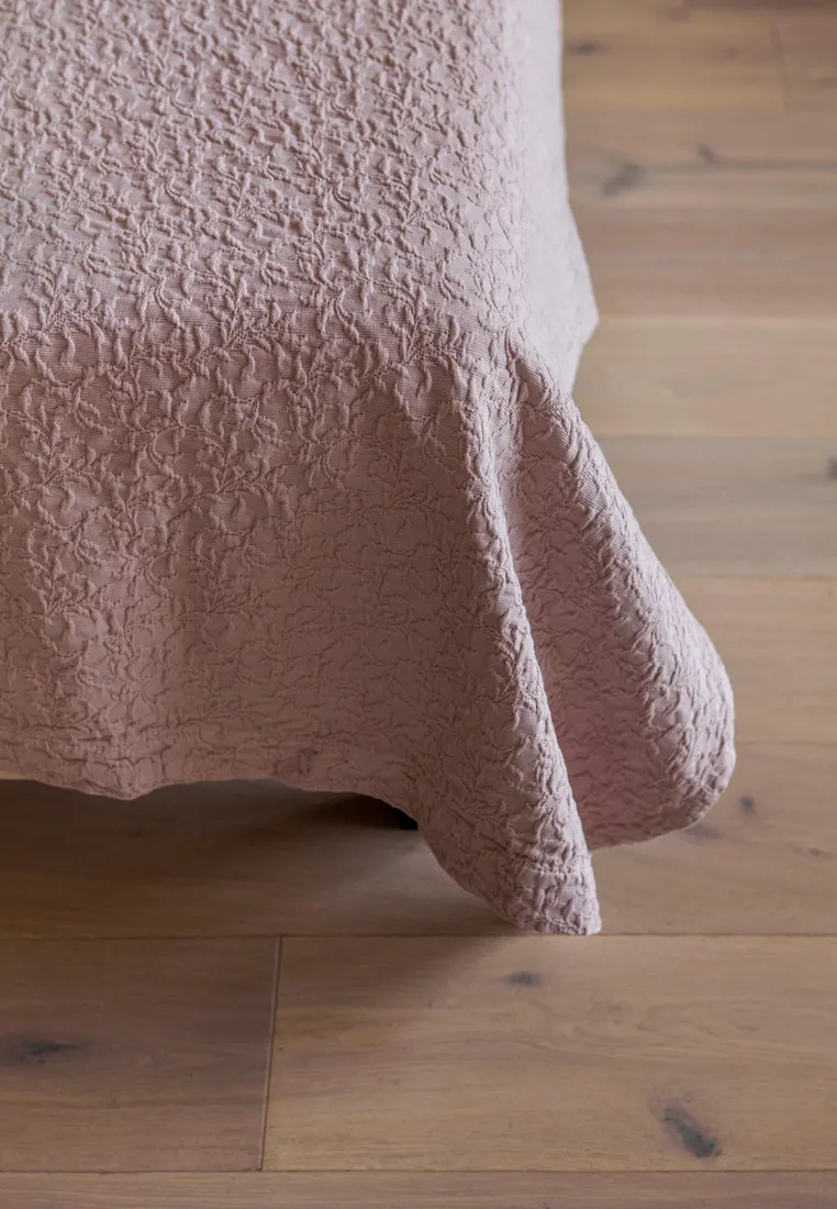 Хлопковое покрывало SAKURA в дымчато-розовом цвете напоминает своей фактурой бесконечное облако цветущей сакуры.Покрывало практичное, оно не боится зацепок благодаря прочному переплетению нитей.
