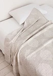 Покрывало "ЛЕЙЛА" изготовлено из хлопка (95%) с добавлением льна (5%). Ткань абсолютно натуральная, гипоаллергенная и очень приятная на ощупь. Покрывало легкое, практически невесомое. При этом устойчиво к деформации.Выполнено в натуральных оттенках: некрашеный лен, экрю. Дизайн: овальные розетки затейливых вензелей и растительный узор. Одна сторона – фон льняного цвета и светлые узоры на нем; обратная – светлый фон и льняные узоры. Его можно использовать в качестве простыни для укрывания.