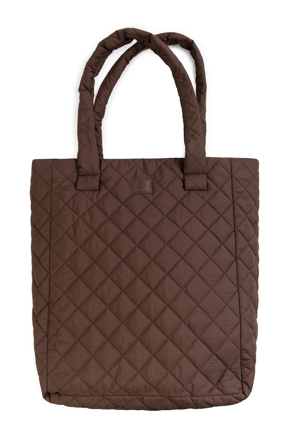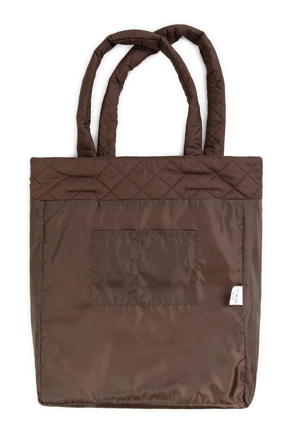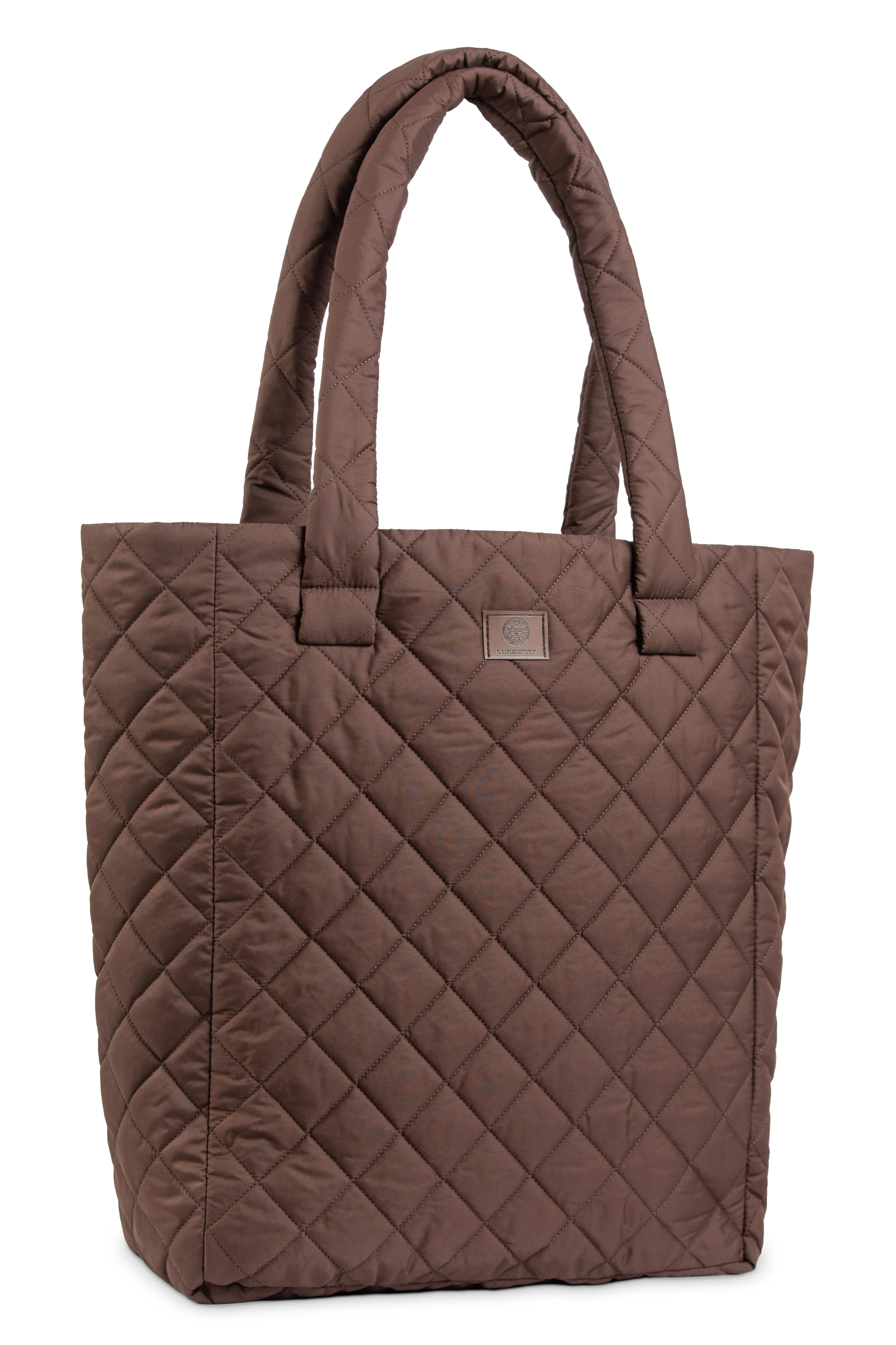 Стеганый шоппер из плащевки на подкладке, с брендированной нашивкой из экокожи. Размер 40х40 см.Стеганый шоппер из непромокаемой плащевой ткани (болонь) - стильная и практичная сумка для похода в магазин и не только.