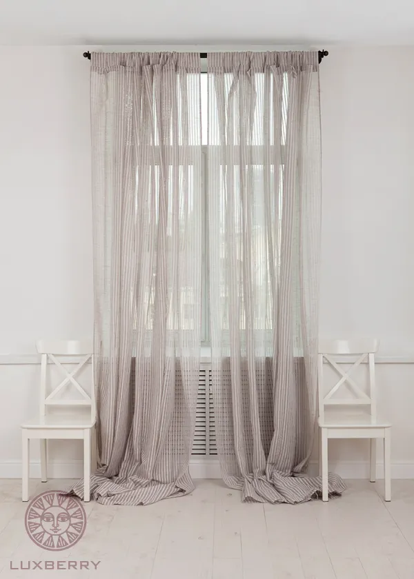 Шторы на петлях “CURTAIN LINE” универсальны, поэтому подойдут как для кухни, так и для спальни или гостиной. Состав – 100% лен. Дизайн – вертикальная полоска.