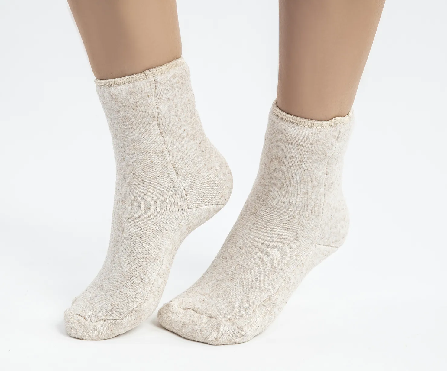 Носки мягко массируют стопу. Они обладают теплозащитными свойствами, легкие и мягкие, защищают от переохлаждения, оберегают от простудных заболеваний. Носки можно носить с обувью с широким мысом, обеспечивая прогрев ног сухим теплом целый день. Материал - трикотажное полотно с чистошерстяным ворсом.