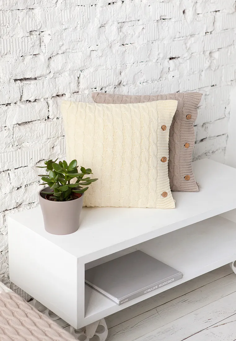 Декоративная наволочка "LUX 22" – это 100% хлопок, итальянская пряжа без добавления синтетики, машинная вязка. Дизайн – "косички", плотная планка с тремя деревянными пуговицами в качестве застежки. Наволочку можно стирать в машинке, только в специальной сеточке для нежной стирки, сушить в разложенном виде на горизонтальной поверхности. Обратите внимание на плед “LUX 22” из этой же коллекции.Не забудьте купить подушку для наволочки в разделе “Одеяла и подушки”.