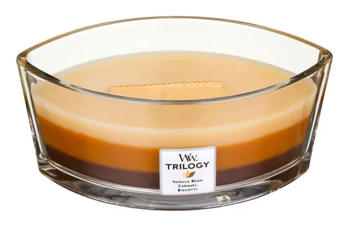 Интерьерные ароматические свечи коллекции «Trilogy» американской компании WoodWick — это композиция из трех свечей, которые сгорают одна за другой, наполняя помещение настоящей феерией ароматов.Трехслойная ароматическая свеча-эллипс Trilogy Ellipse Cafe Sweets соединяет в себе три свечи, каждая из которых по-своему отражает восхитительные ароматы кафе.