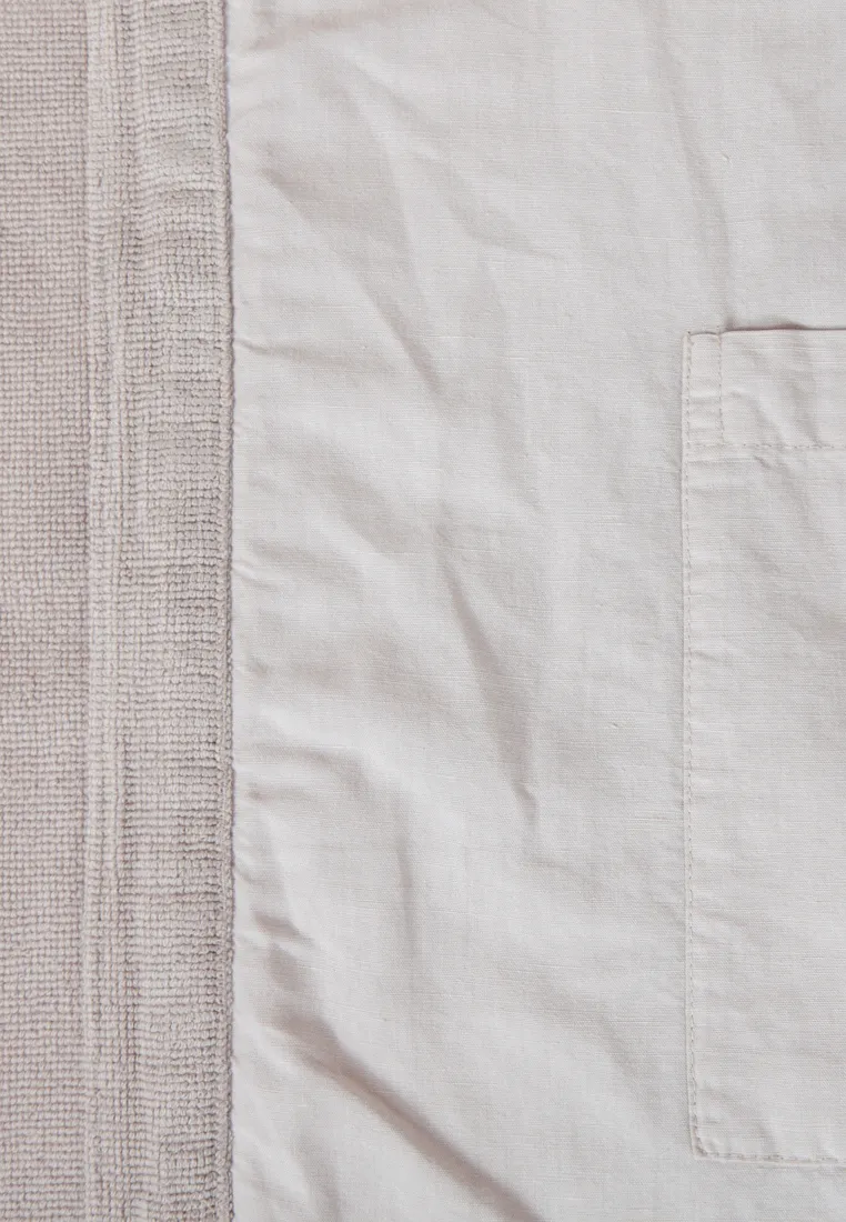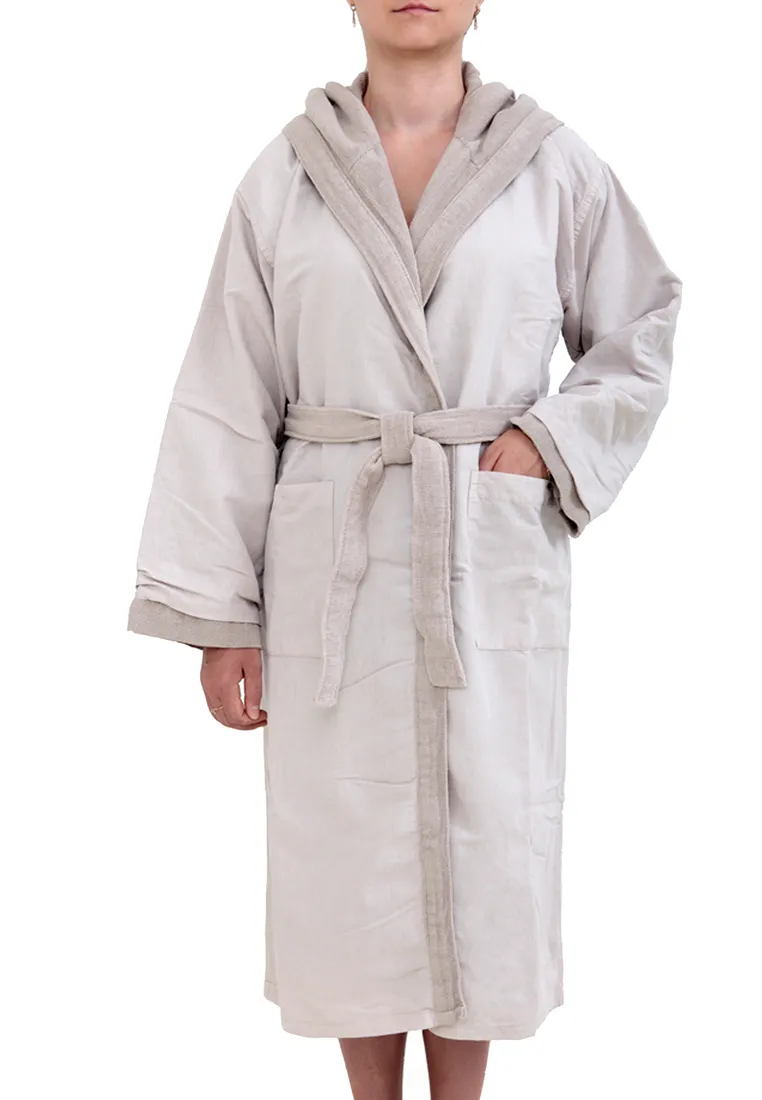 Халат “SENSES” сшит из махрового полотна, которое предварительно декатировано (обработано паром) для окончательной усадки ткани. Покупая этот халат, Вы можете быть уверены, что он не станет Вам мал после первой стирки.Благодаря специальной технологии производства, халат плотный, но в то же время мягкий и нежный. Он хорошо впитывает влагу, быстро сохнет и легко гладится. Состав изделия полностью натуральный (лен и хлопок), ткань хорошо пропускает воздух, позволяя телу дышать. В нем будет комфортно в любое время года.