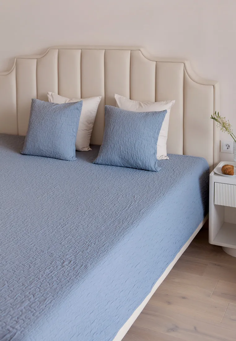 Минималистичные декоративные наволочки JAPANDY отлично дополнят покрывало из этой же коллекции. Имеют 3D-фактуру в виде плывущих облаков.Наволочки не боятся зацепок от коготков домашних питомцев, потому что имеют плотную структуру ткани.