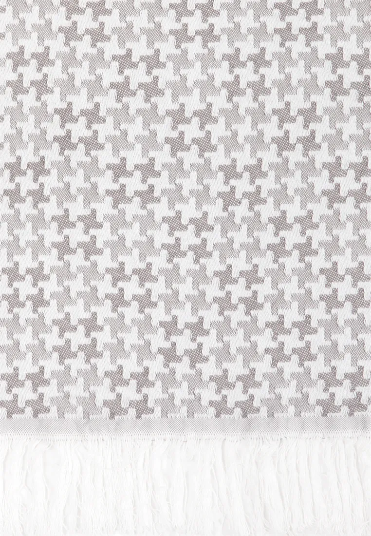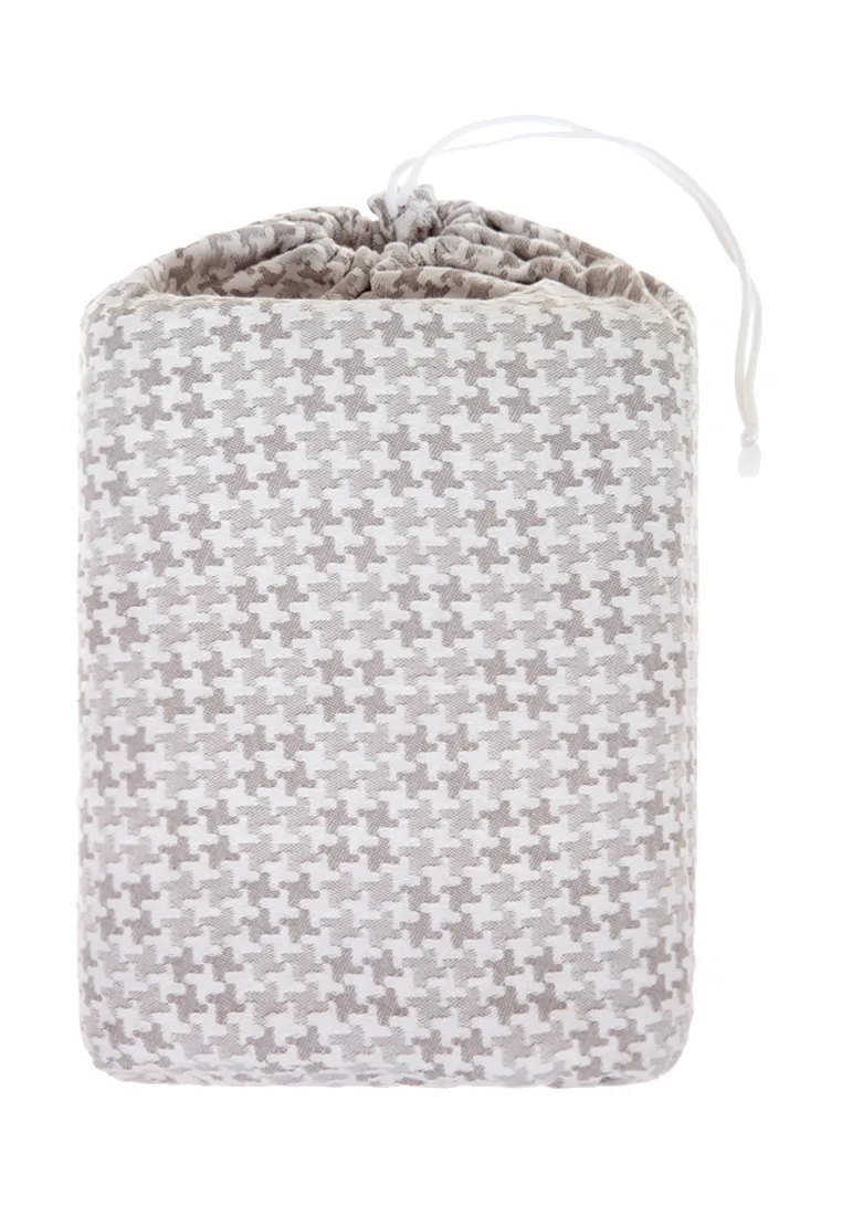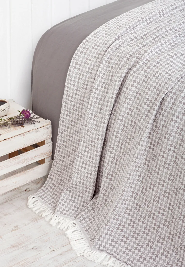 Покрывало "EASY LIFE" выполнено из хлопка и льна жаккардовым переплетением и упаковано в мешочек из этой же ткани. Край покрывала отделан густой бахромой. Отличительная черта жаккарда - тканый, регулярно повторяющийся рисунок. Рисунок покрывала "EASY LIFE" - изысканная "пепита" (гленчек).Изделия из жаккарда прочные, износостойкие, поскольку нити при изготовлении покрывала при переплетении еще и перекручиваются. Жаккардовое покрывало "EASY LIFE" устойчиво к деформации, не вытягивается и непритязательно в уходе.