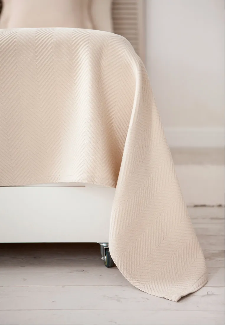 Покрывало "DACHA" плотное и легкое, с отчетливым фактурным рисунком "елочка". Модель выполнена в приятном уютном цвете — так и хочется укутаться! Несмотря на название, покрывало универсальное. Подойдет как для спальни, так и для оформления интерьера дачи или загородного дома. Обратите внимание, что в дополнение к покрывалу в нашем интернет-магазине можно купить декоративные наволочки.Чтобы изделие радовало Вас подольше, рекомендуется стирка в машинке в бережном режиме при температуре 30 градусов.