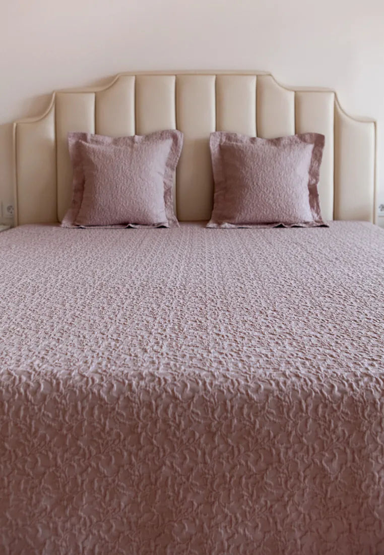 Хлопковое покрывало SAKURA в дымчато-розовом цвете напоминает своей фактурой бесконечное облако цветущей сакуры.Покрывало практичное, оно не боится зацепок благодаря прочному переплетению нитей.