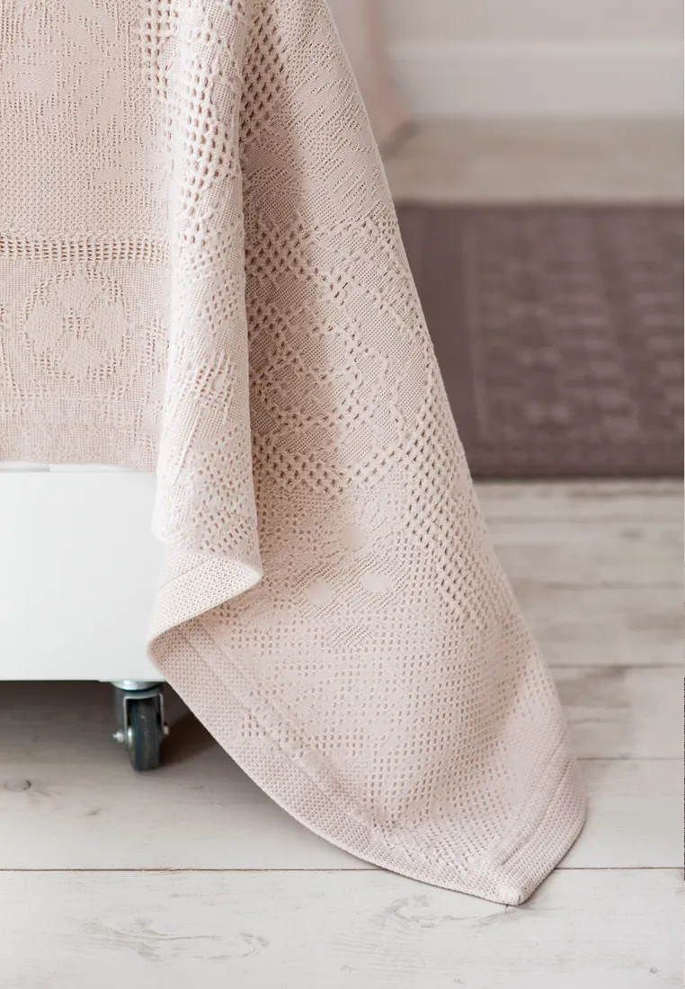 Покрывало “VIVIEN” – это новый дизайн уже полюбившимся многим покрывал из стилизованной вафельной ткани. Покрывало выполнено из 100% хлопка. Ткань плотная, тяжелая, красиво драпируется. Фактура очень напоминает привычную всем "вафельку", только высокой плотности. Приятная на ощупь, чуть тянется и практически не мнется. Декорировано цветочным узором, чем-то напоминающим кружево.Рекомендуем дополнить покрывало наволочками из этой коллекции.
