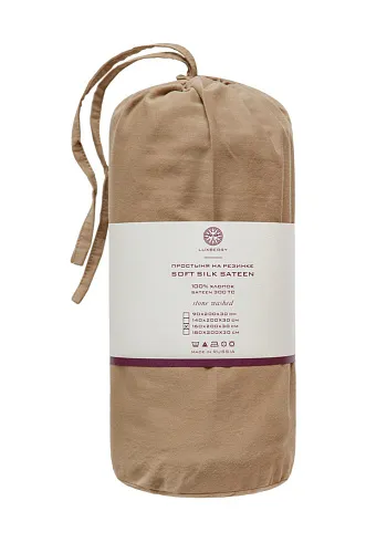 Простыня на резинке в тубусе, хлопок 100% сатин, бежевая...