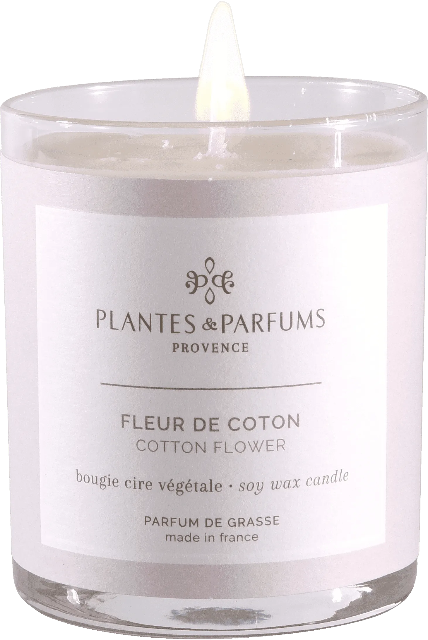 Свеча ароматическая в стеклянном стакане "Цветок хлопка" 180г от Plantes et Parfums. Ароматизированная восковая натуральная свеча обладает пудровым ароматом цветка хлопка и пиона. Верхние ноты: Зеленые ноты, Малина. Сердце: Пион, Цветок хлопка, Фиалка, Земляника. Шлейф: Гелиотроп, Кедр, Белый мускус. Время горения аромасвечи: до 40 часов. Интерьерные эко свечи для дома производятся в мастерских во Франции из тщательно отобранного сырья. Декоративная свеча для домашнего уюта изготовлена из соевого воска и фитиля из хлопка. Перед использованием укорачивайте фитиль до 5 мм и дожидайтесь образования ожогового бассейна. Свечи для дома не должны гореть дольше, чем 4 часа за один сеанс. Арома свеча с ароматом природы станет уникальным предметом интерьера. Её можно подарить на любой праздник: День Рождения, на Новый год и на свадьбу. Вдохновляясь красотой родного Прованса, основатели Plantes & Parfums de Provence создали уникальную коллекцию парфюмерии для дома, пропитанную духом юга Франции.