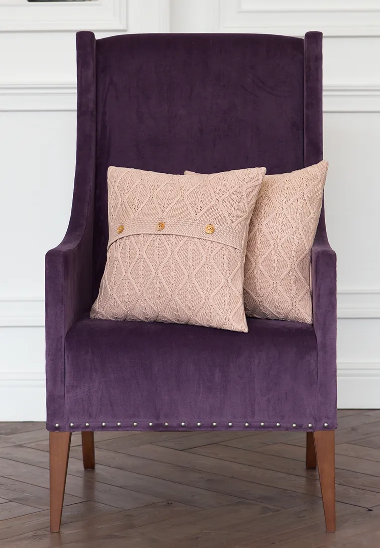 Декоративная наволочка LUX 46- это 100% хлопок,итальянская пряжа, без добавления синтетики.Это машинная вязка.Имеет сложный дизайн в виде вывязанных кос и ромбов, хорошая плотная планка с тремя деревянными пуговицами в качестве застежки.Нашу наволочку можно стирать в машинке,только в специальной сеточке для нежной стирки, сушить разложенном виде на горизонтальной поверхности. Не забудьте купить подушку ТМ Люксбери! Обратите внимание на плед LUX 46 из этой же коллекции.Тип ткани - Хлопок 100%